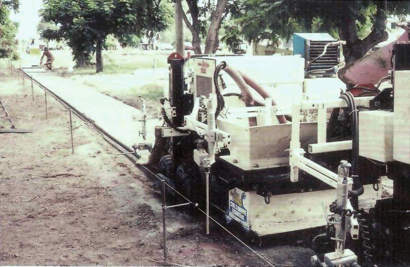 Speciális gépünk -betonfiniser-segítségével egy sávban akár 2 méter szélességben tudunk monolit betonjárdát, kerékpárutat készíteni, kiváltva ezzel a zsaluzással, szegélykövezést igénylő kézi erővel, lényegesen lassabban készülő, széles körűen alkalmazott eddigi technológiákat.